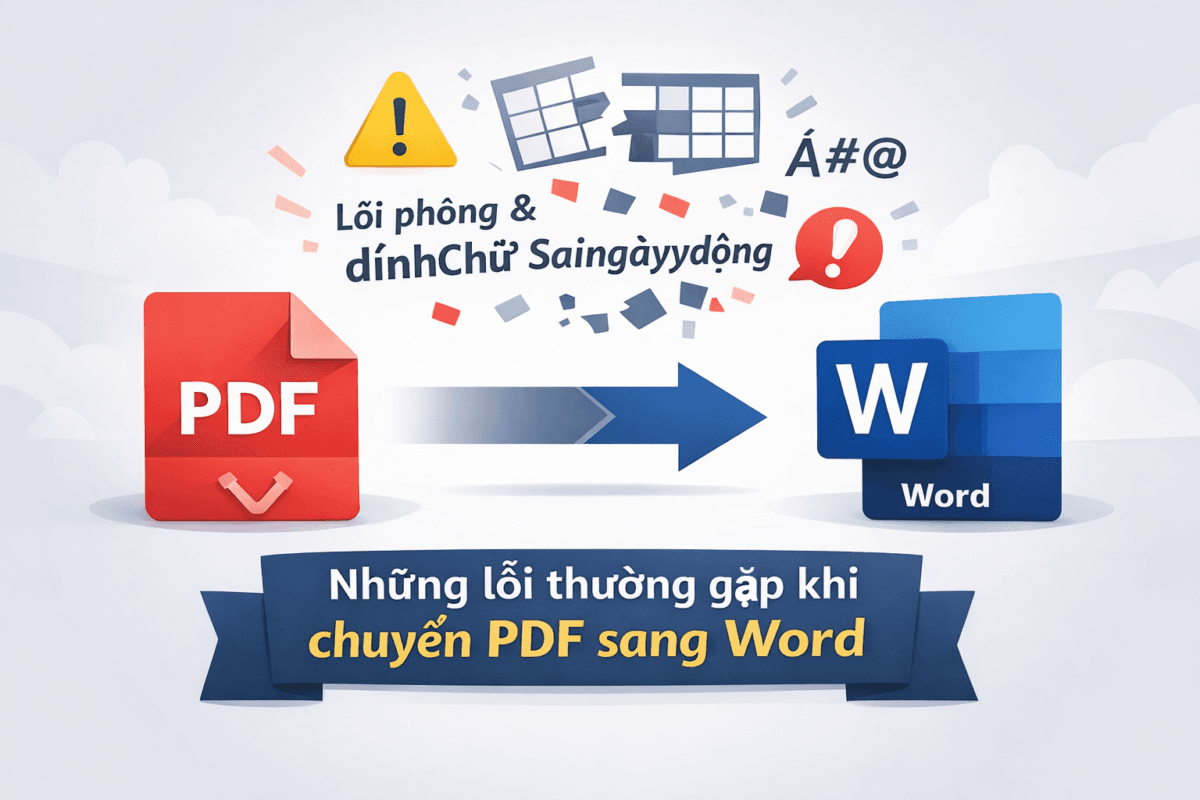 Chuyển PDF sang Word tưởng đơn giản nhưng lại dễ phát sinh nhiều lỗi như sai định dạng, vỡ bảng, lỗi font hoặc không chỉnh sửa được nội dung. Bài viết này giúp bạn hiểu rõ những khó khăn thường gặp khi chuyển PDF sang Word, phân biệt đúng loại PDF và lựa chọn cách xử lý phù hợp để đạt kết quả tốt nhất, đặc biệt với tài liệu tiếng Việt và file scan